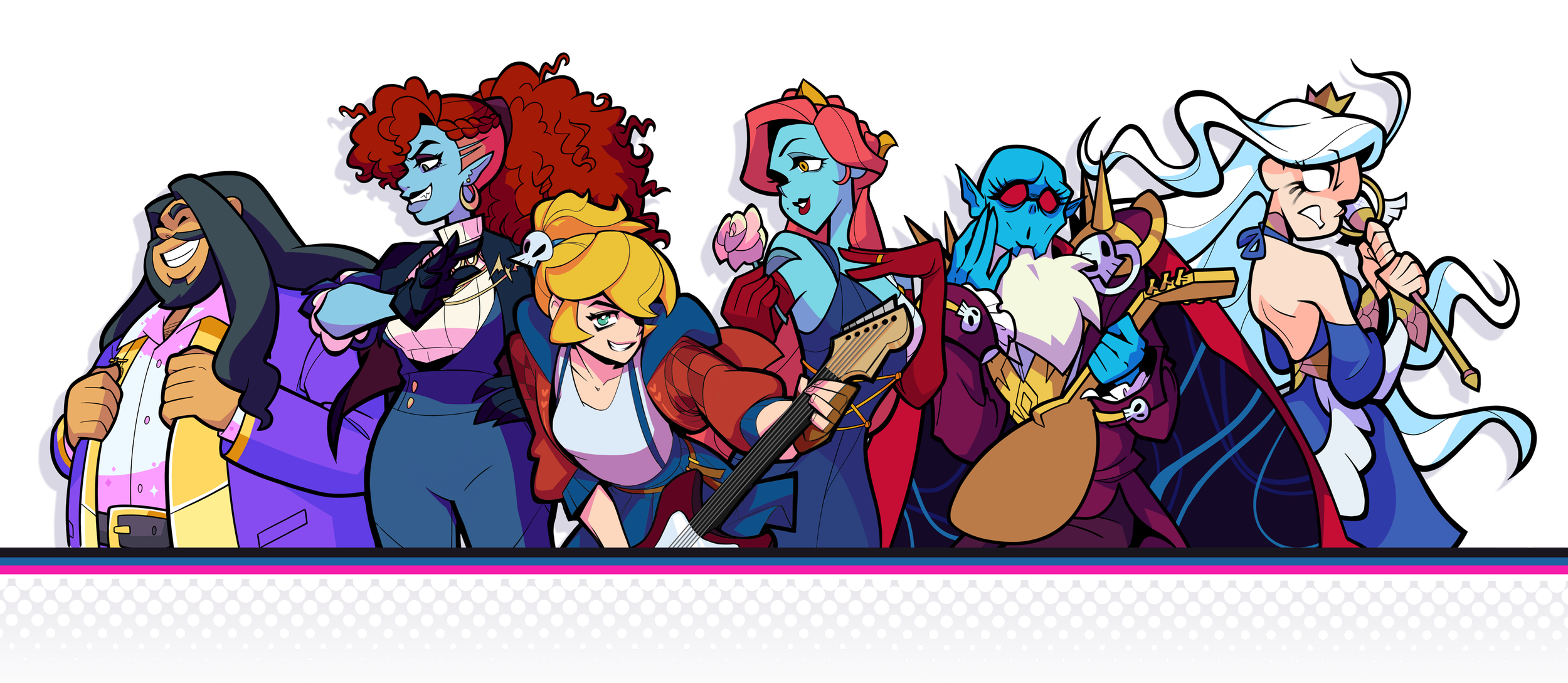 In 2021, I was brought on to art direct a spin-off of the 2015 hit rhythm game, Crypt of the NecroDancer. I led the artistic development of the project, including backgrounds, the logo, UI, VFX, etc, and was heavily involved in illustrating all characters. The game was released on Steam and Switch in 2025, receiving overwhelmingly positive reviews.