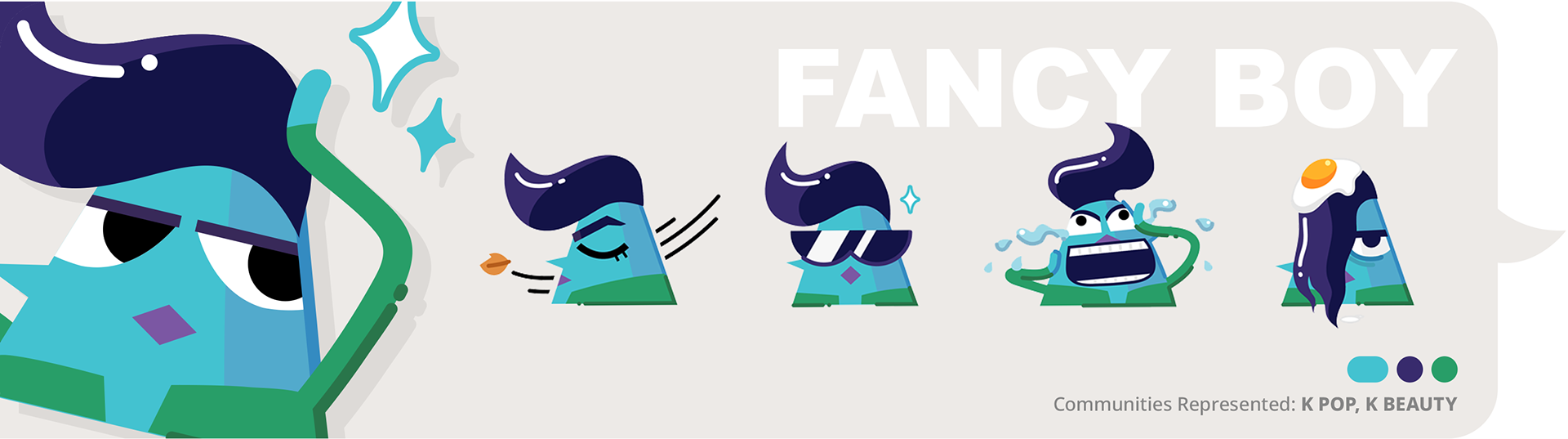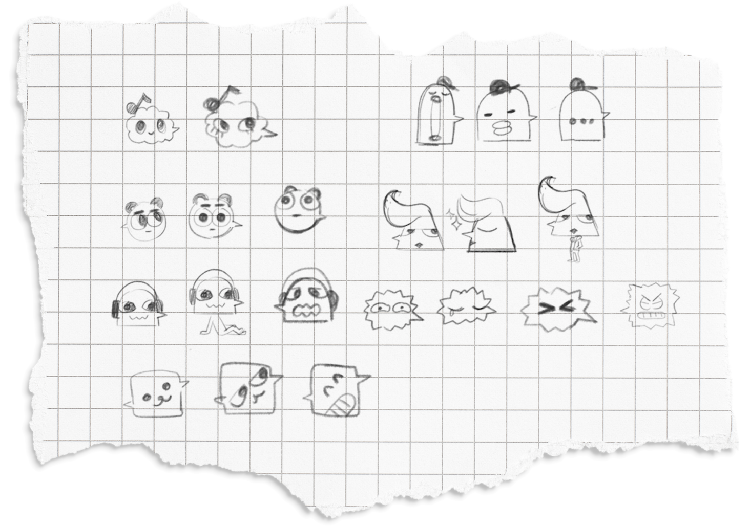 Early concept sketches. The characters are based on speech bubble shapes as a nod to the idea that communication and expression are central tenets of the app.